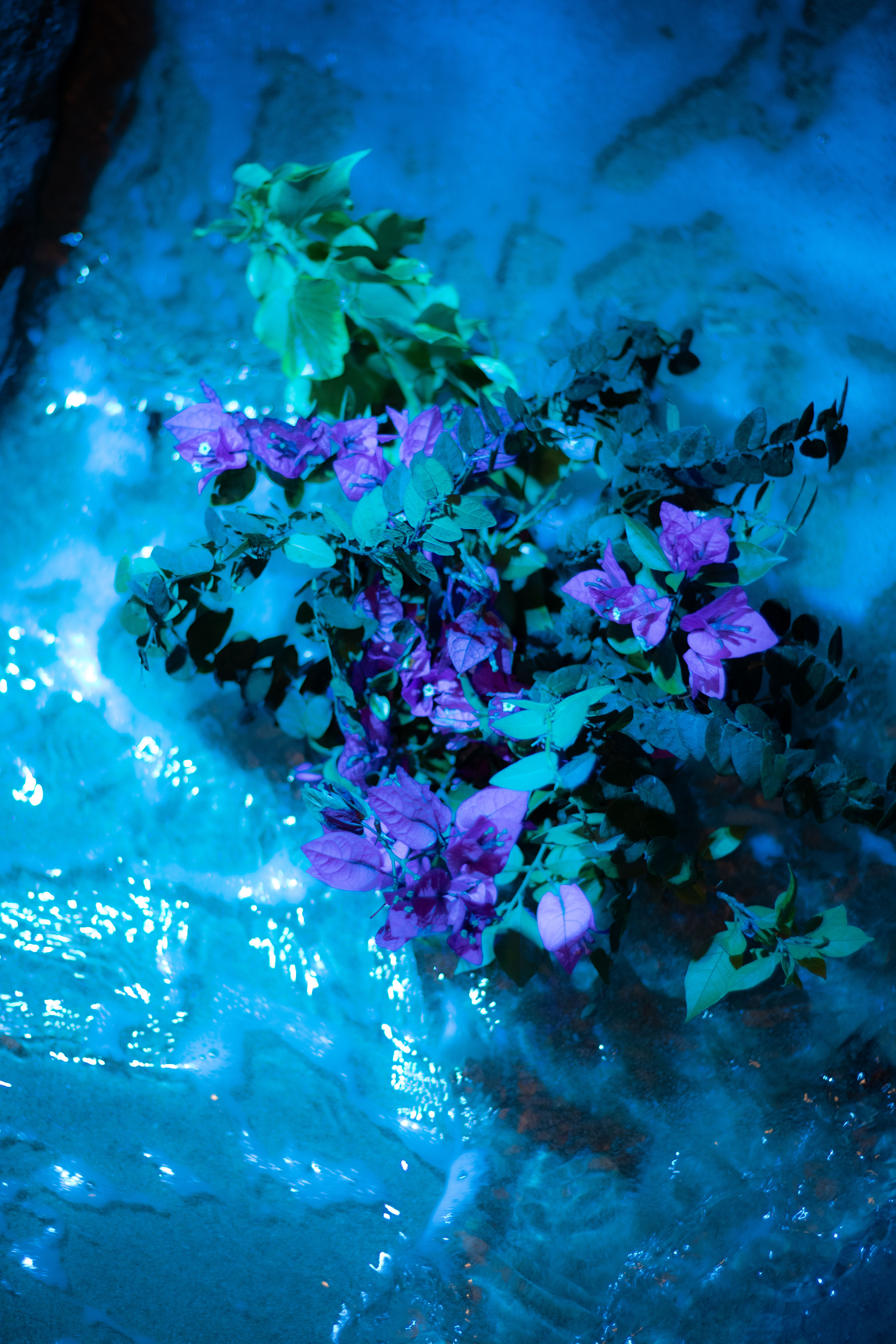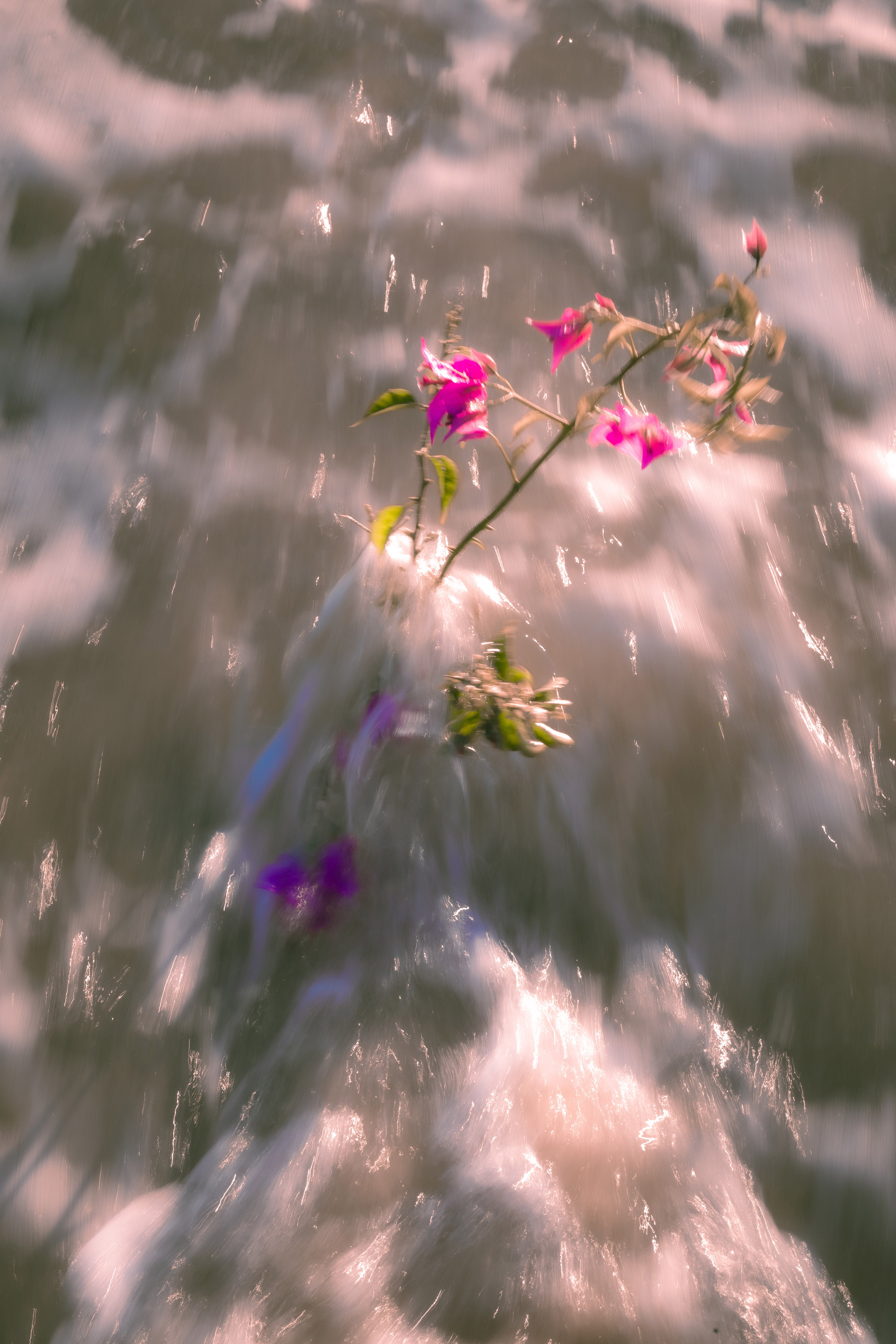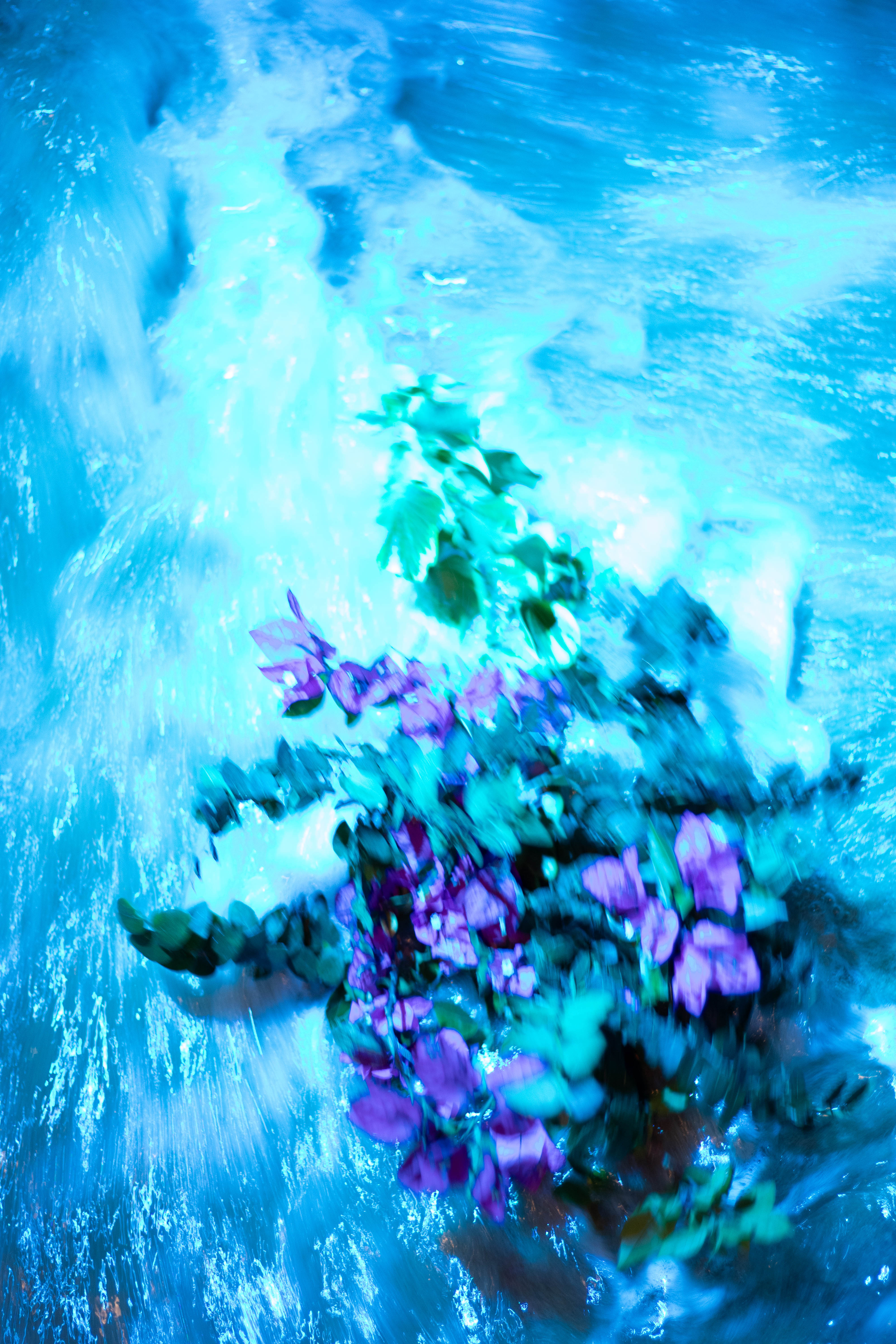 Do plants dream? My project begins with the question of what a plant would dream of, perhaps the sea? I took a bouquet of bougainvillea blossoms to the water to visualize this dream. Long exposures captured its encounter with the waves, surreal and distorted like a dream. At night, the bouquet was carried away by the waves, only to return later, changed but still recognizable. This project reflects the experience of dreaming: daring to cross boundaries, immersing oneself in the unknown. The exhibition, with freely hanging images, video projections, and the sounds of the sea, invites visitors to reflect on their own dreams and to find the courage to live them.