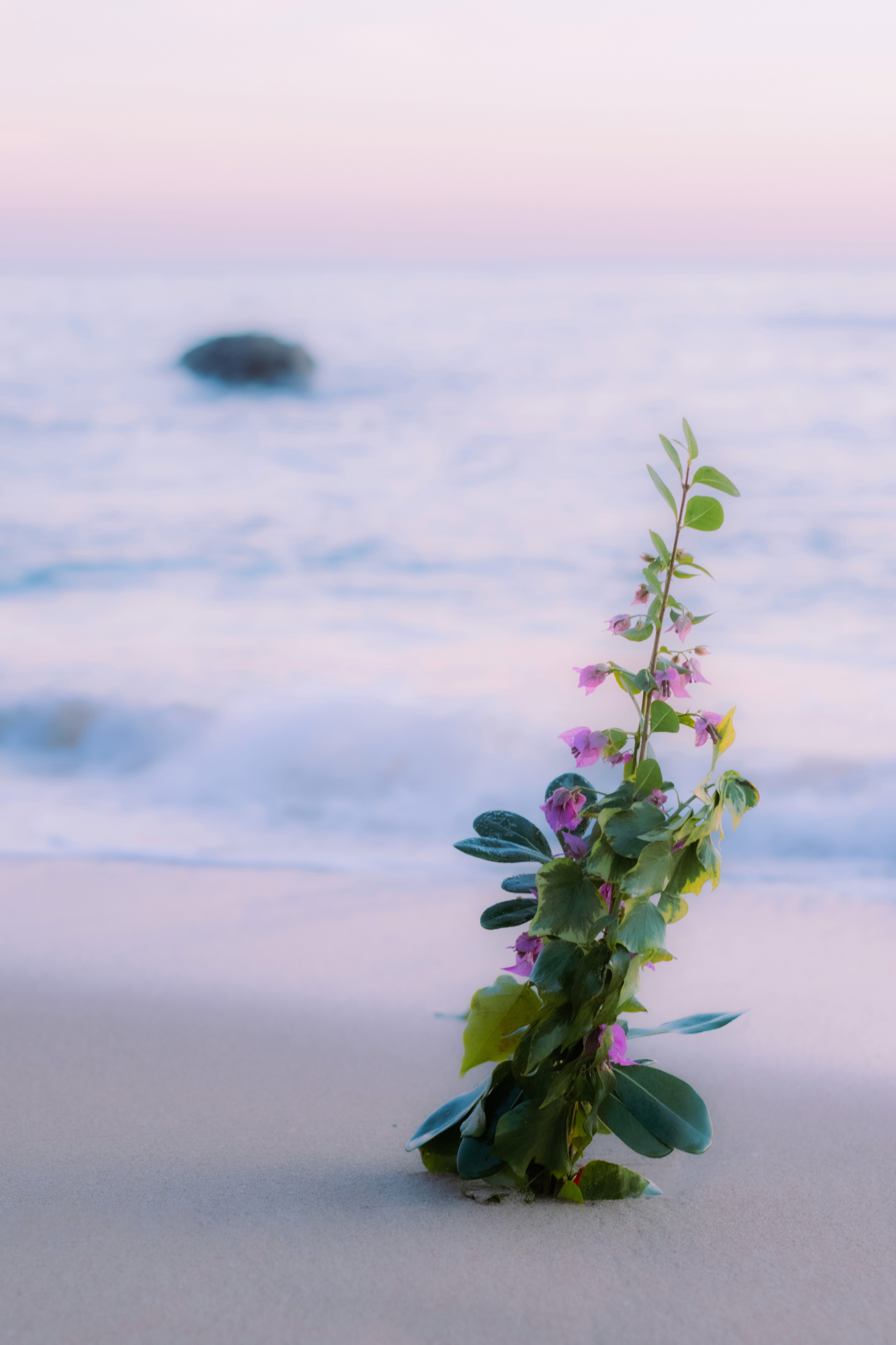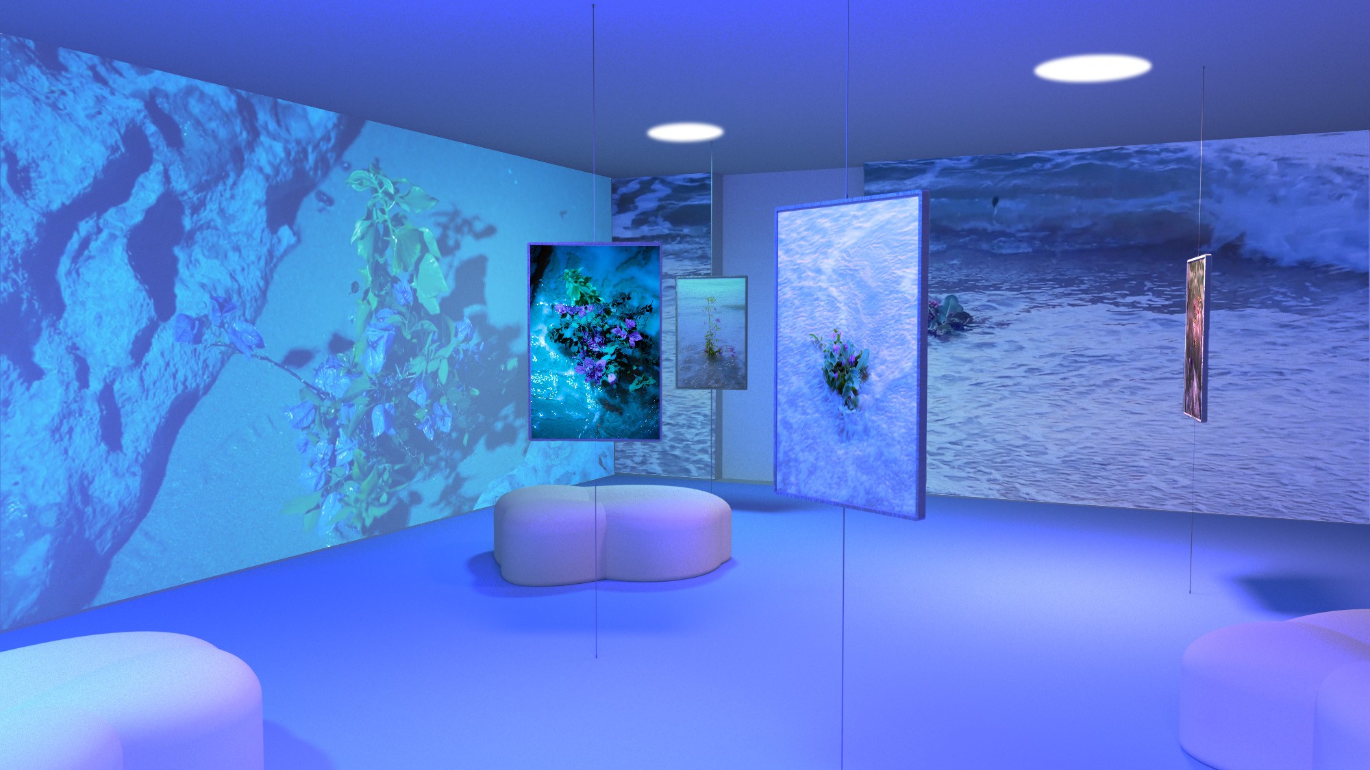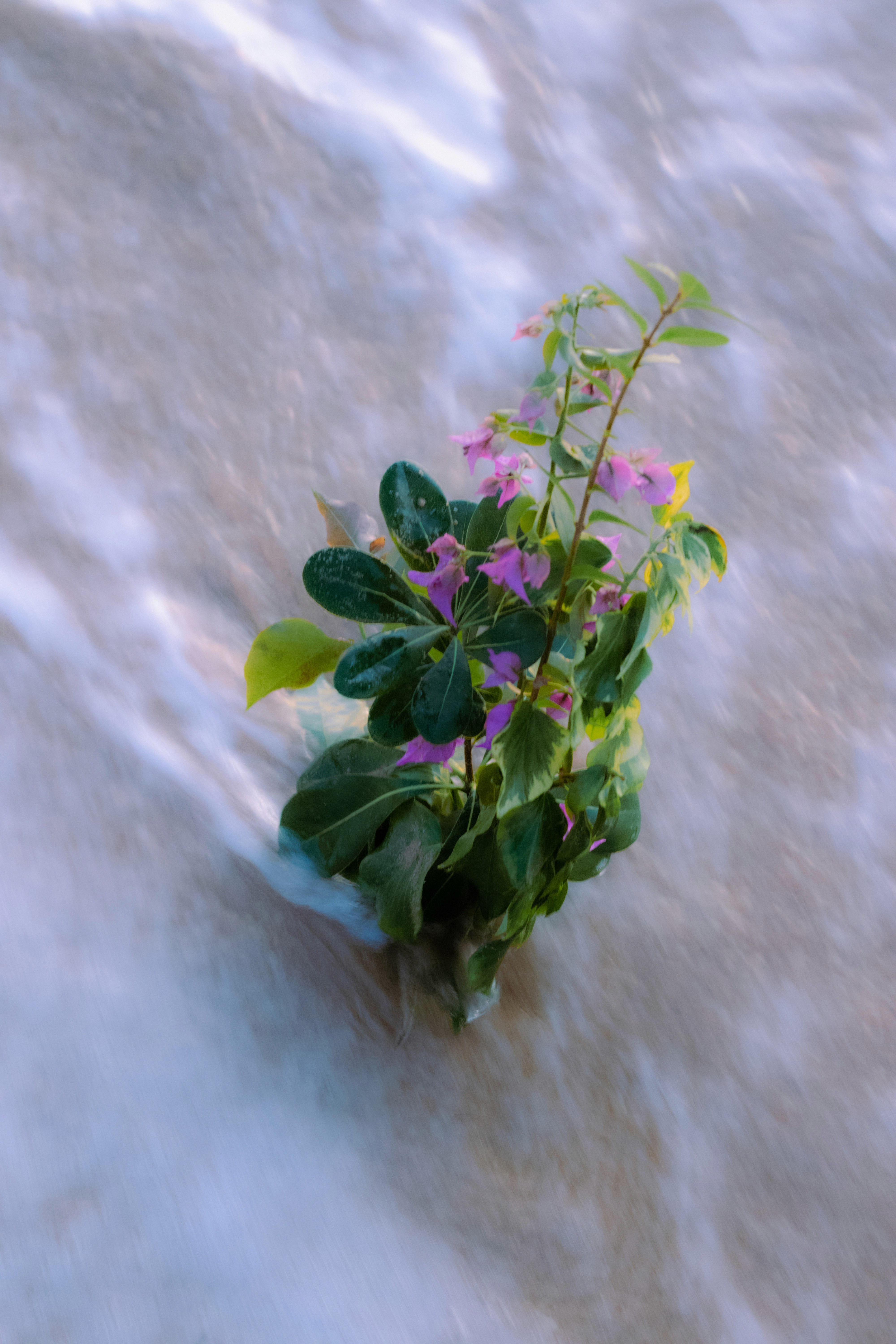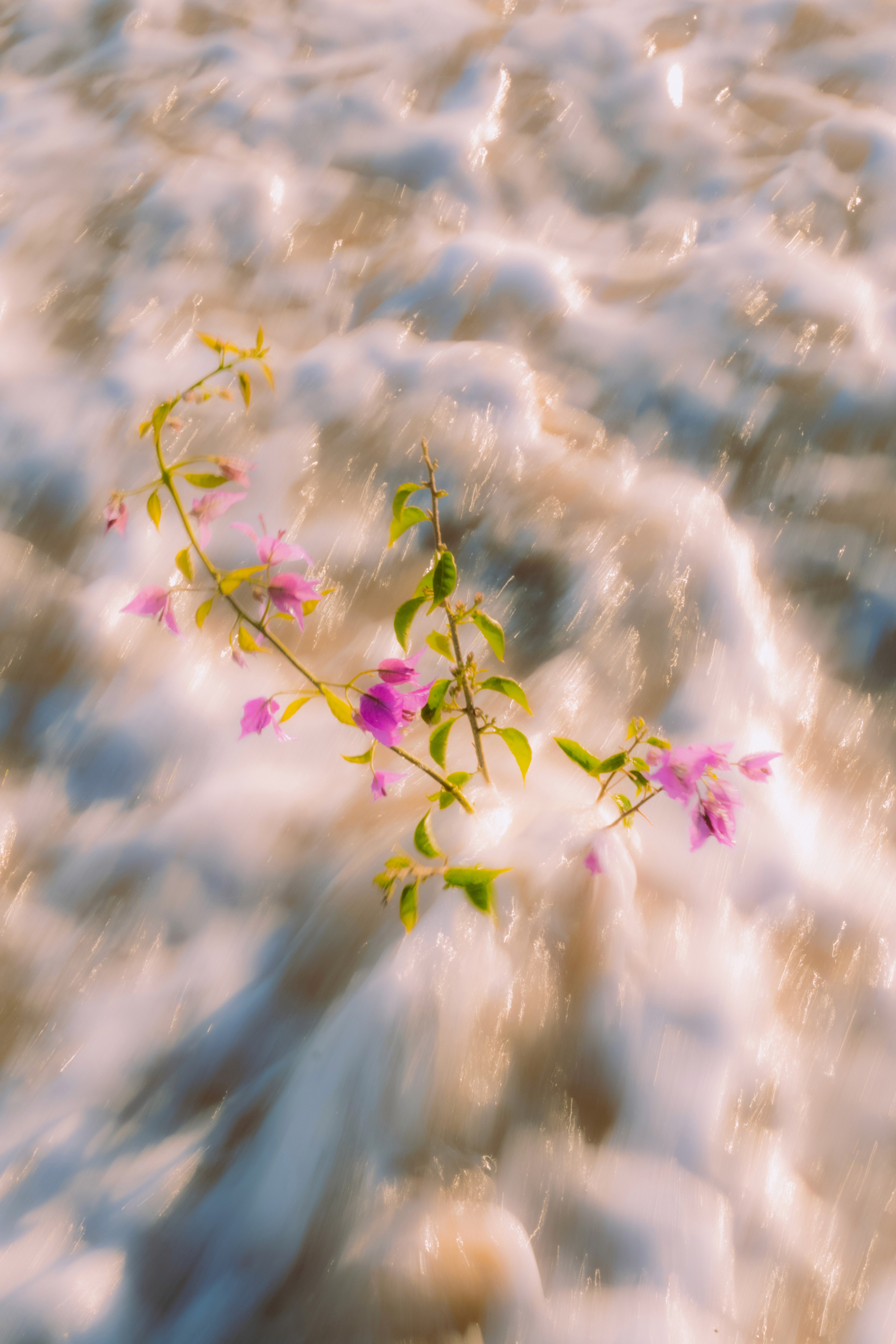 Do plants dream? My project begins with the question of what a plant would dream of, perhaps the sea? I took a bouquet of bougainvillea blossoms to the water to visualize this dream. Long exposures captured its encounter with the waves, surreal and distorted like a dream. At night, the bouquet was carried away by the waves, only to return later, changed but still recognizable. This project reflects the experience of dreaming: daring to cross boundaries, immersing oneself in the unknown. The exhibition, with freely hanging images, video projections, and the sounds of the sea, invites visitors to reflect on their own dreams and to find the courage to live them.